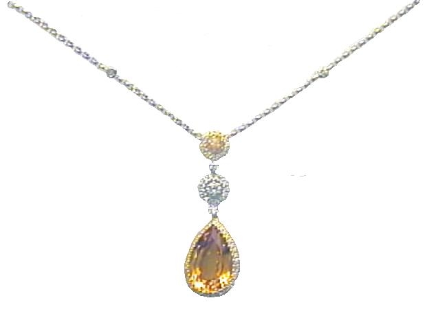 18 k white diamond necklace 0.69 ct. rounds 0.15 ct. sapphire 5.27 ct. cetrine (Please call for pricing)