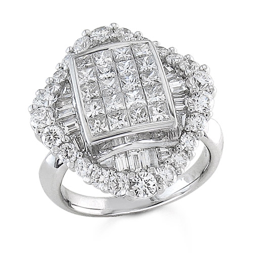 18 k white diamond ring 1.18 ct princess 0.74 ct baguette 1.12 ct rounds (Please call for pricing)